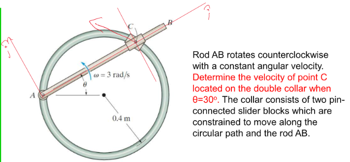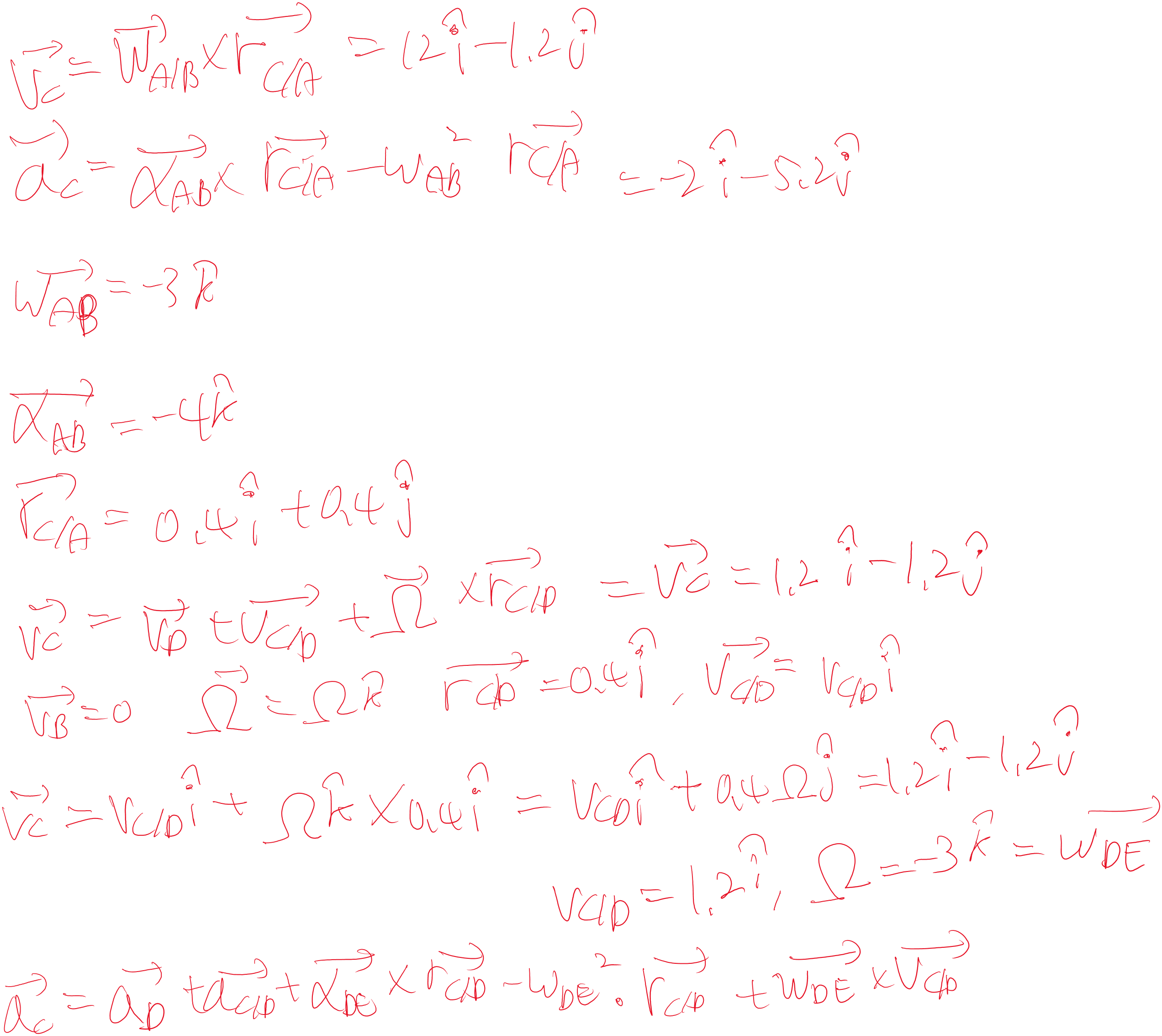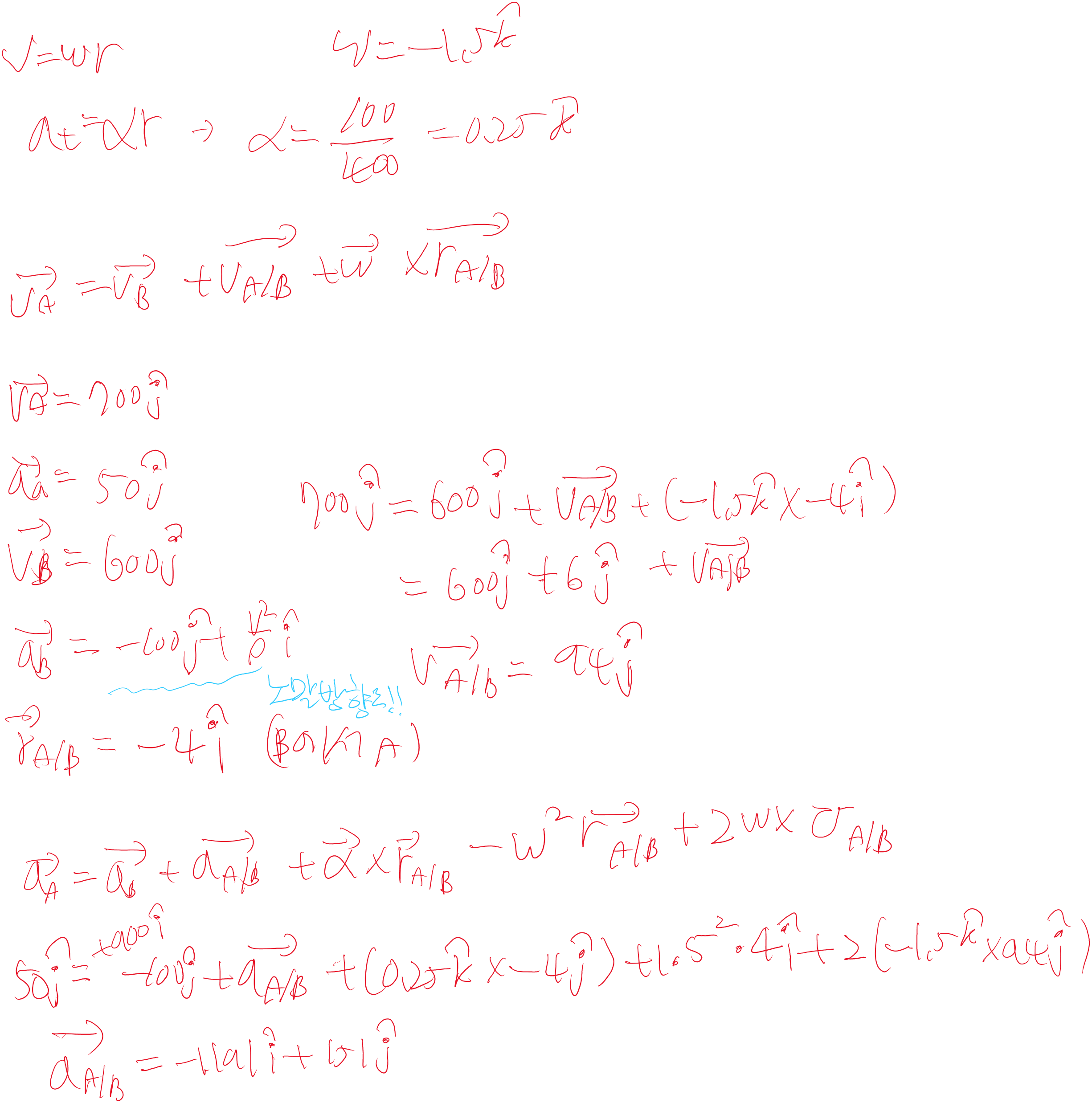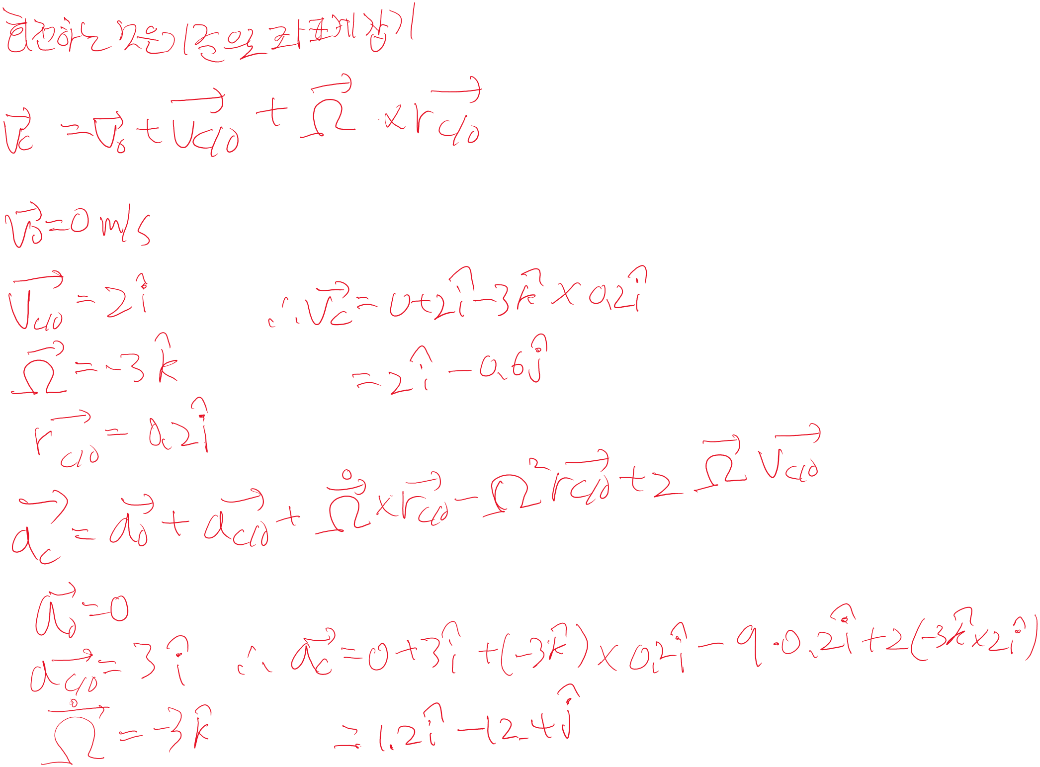 여기선 막대기가 두개이므로 각 속도와 각 가속도를 알고, 고정되어 있는 축을 이용해 c에 대한 속도와 가속도를 구합니다.