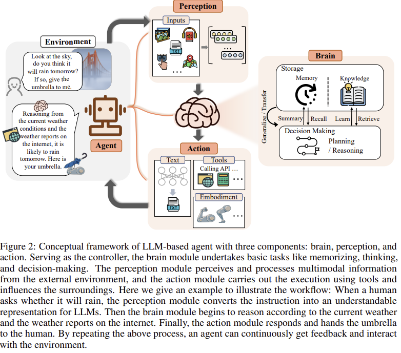 - LLM의 적합성 분석: LLM이 에이전트 "브레인"으로 적합한 이유를 탐구하며, 자율성, 반응성, 적극성, 사회성 등의 특징을 제시.