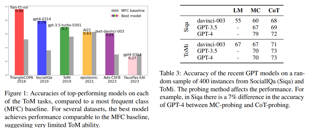 - 최신 모델(GPT-4)은 일부 ToM 과제에서 높은 성능을 보임.