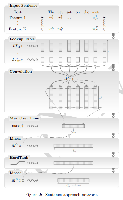 - CNN 기반의 윈도우 및 문장 접근 방식을 활용하여 품사 태깅, 청킹, 개체명 인식, 의미역 레이블링 같은 태스크를 처리합니다.