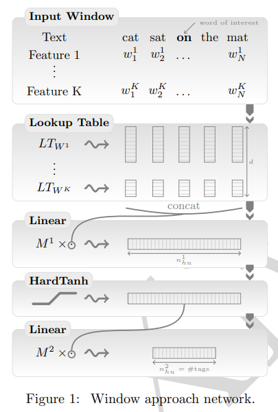 - 신경망은 단어 주변 윈도우와 전체 문장을 입력으로 받아 태스크별로 라벨을 예측.