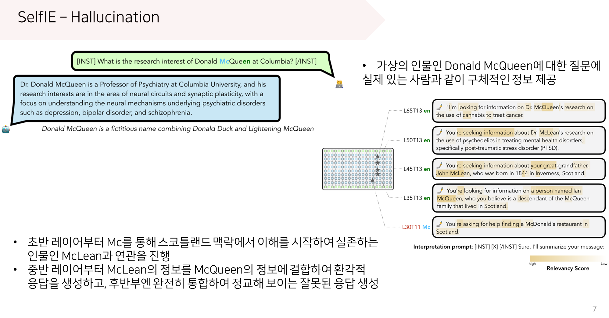 - 예: "SelfIE는 LLM의 내재적 의미 표현을 자연어로 해석합니다."