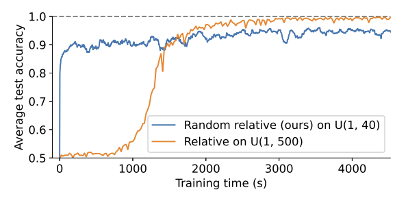 기존 방식에서 긴 시퀀스를 학습하려면 계산 비용이 \(O(\ell^2)\)로 증가하지만, RPE는 짧은 시퀀스에서도 일반화가 가능하여 학습 효율성을 크게 높입니다. 실험 결과, RPE는 기존 방식 대비 테스트 정확도가 평균 12% 개선되었으며, 특정 작업에서는 최대 43.5% 성능 향상을 달성했습니다.