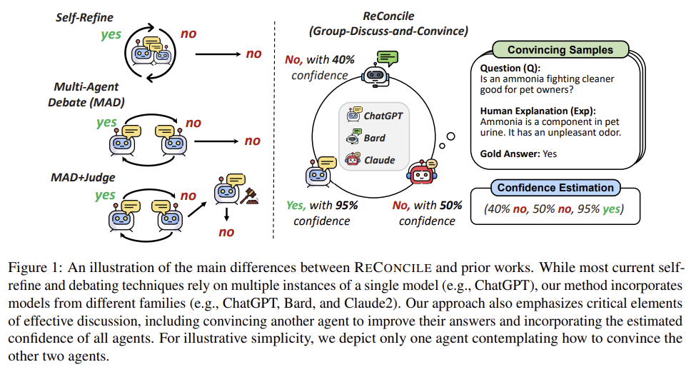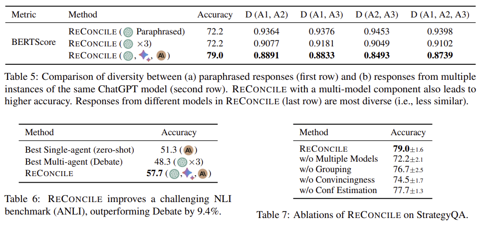- RECONCILE은 7개 벤치마크(전략적 질문 응답, 수학적 추론, 논리적 추론 등)에서 기존 방법들을 초과하는 성능을 보였습니다.