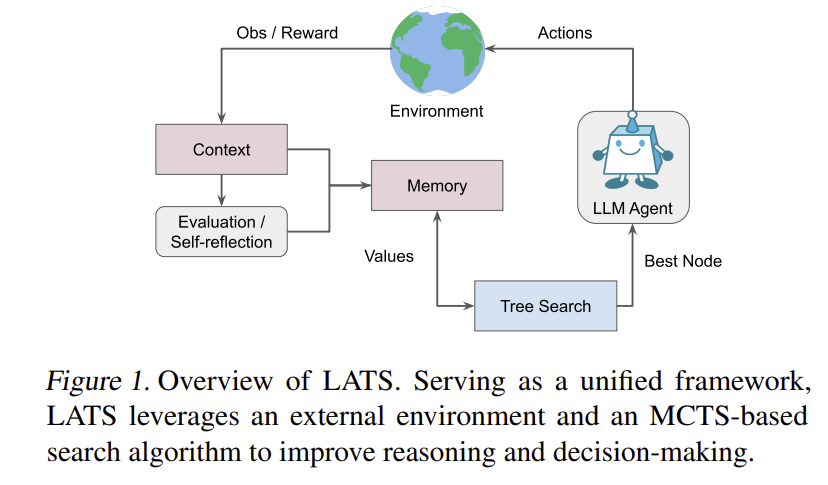 - 연관성: LATS는 ToT의 트리 탐색 알고리즘을 Monte Carlo Tree Search (MCTS)로 대체하여, 외부 피드백을 활용한 적응적 문제 해결을 가능하게 함.