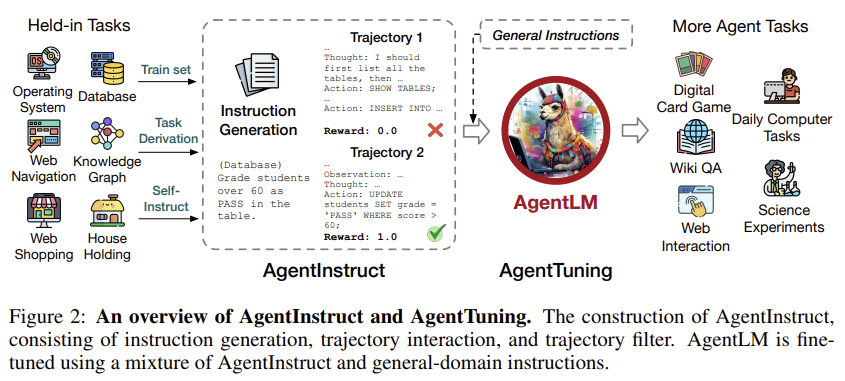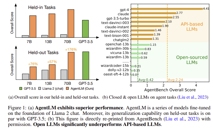 - Llama 2와 같은 오픈 소스 모델을 기반으로 AgentLM(7B, 13B, 70B) 모델을 생성.