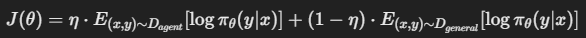 Agent Instruction dataset을 통해서 사고 과정을 학습하고, 일반 코퍼스 데이터를 통해 생성 능력 또한 유지했습니다.