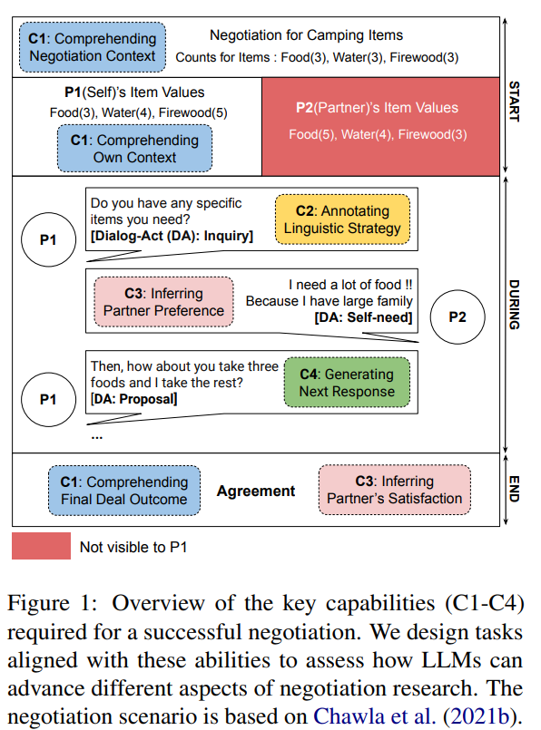 - 협상 프로세스를 4가지 핵심 역량(이해, 주석, 파트너 모델링, 응답 생성)으로 분류.