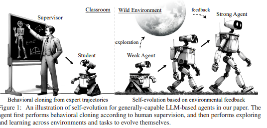 | 연구 문제 | - LLM 기반 에이전트의 다양한 환경에서의 일반화 능력 부족과 자기진화(Self-Evolution) 미흡 해결. - 탐색과 학습을 통해 새로운 작업에 적응 가능한 에이전트 개발. |