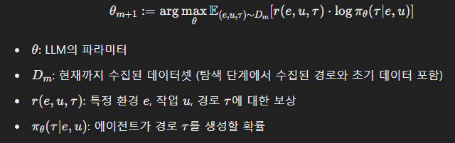 - 보상 기반 지도학습을 활용해 성공적인 행동 경로를 강화하고, LLM의 성능을 점진적으로 개선.