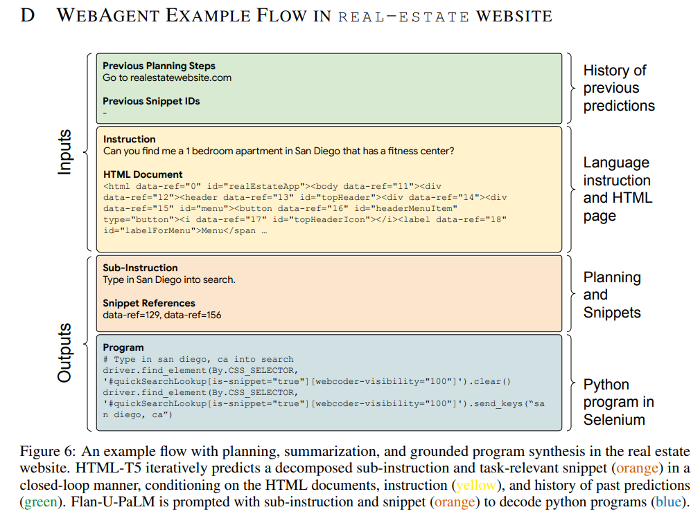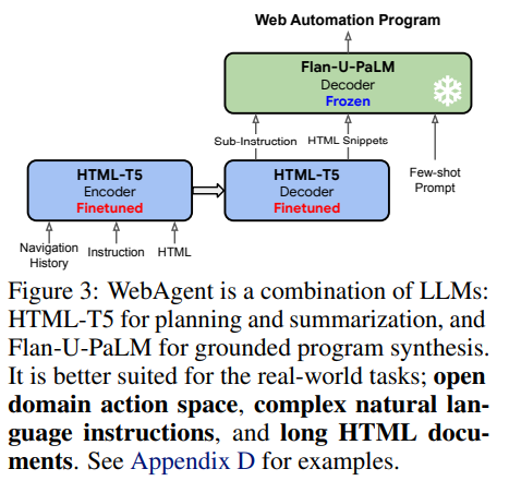 | 구성 요소 | - HTML-T5: HTML 문서 요약 및 작업 계획 수립 - Flan-U-PaLM: Python 기반 코드 생성 및 실행 |