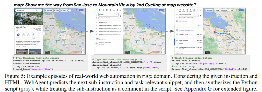 | 작업 단계 | 1. 계획 수립: 자연어 명령을 하위 지침으로 분해 2. HTML 요약: 긴 HTML에서 작업 관련 정보 추출 3. 프로그램 생성: Python 코드 생성 |