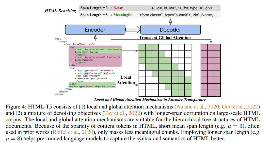 - HTML-T5: HTML 문서를 요약하고 계획을 세우는 데 특화된 언어 모델로, 로컬 및 글로벌 주의 메커니즘을 결합.
