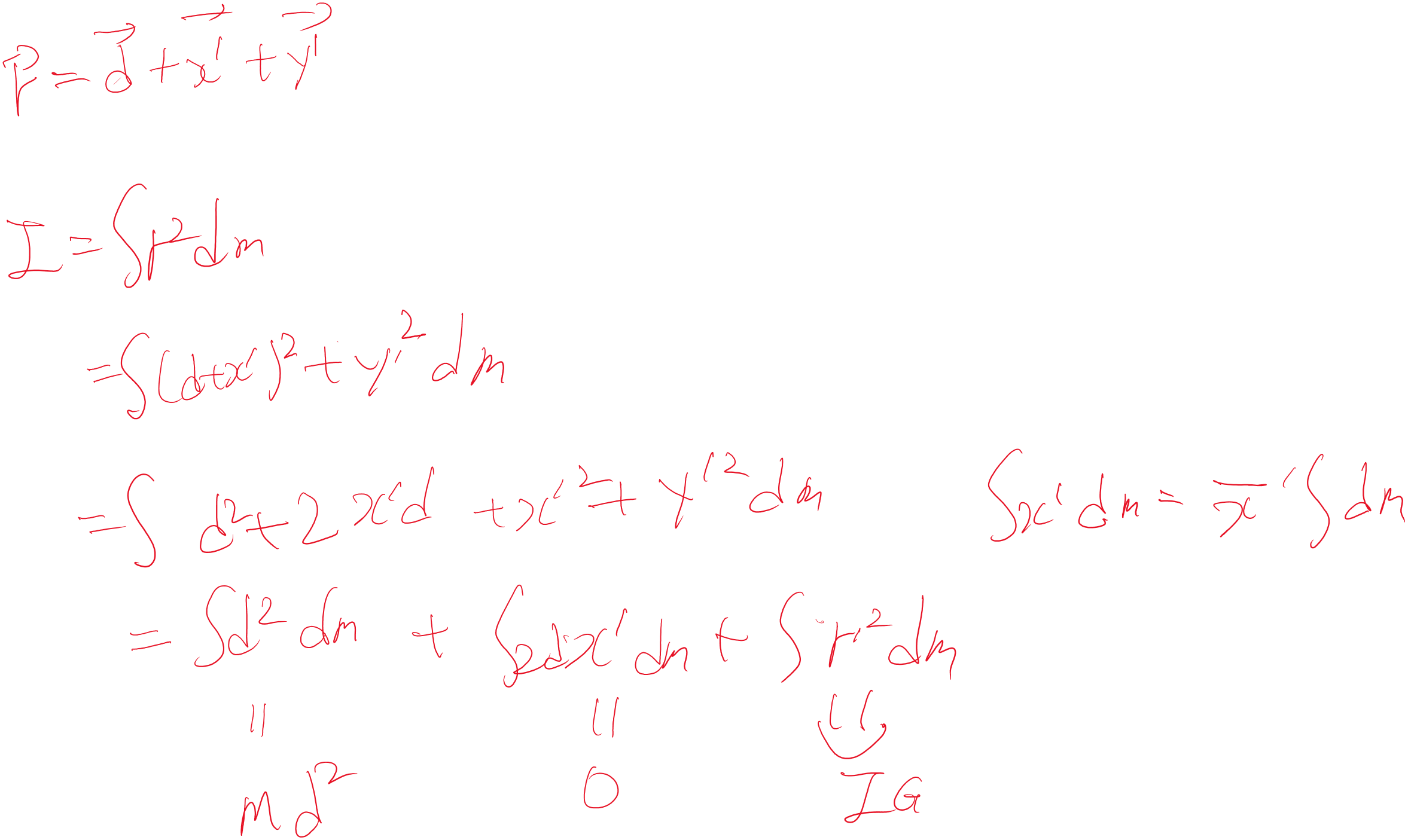 결국 이러한 연산 때문에 막대기의 중앙에서 끝으로 옮기면 1/12 * M L^2 에 (L/2)^2 M이 더해져서 1/3 M L^2이 된다.