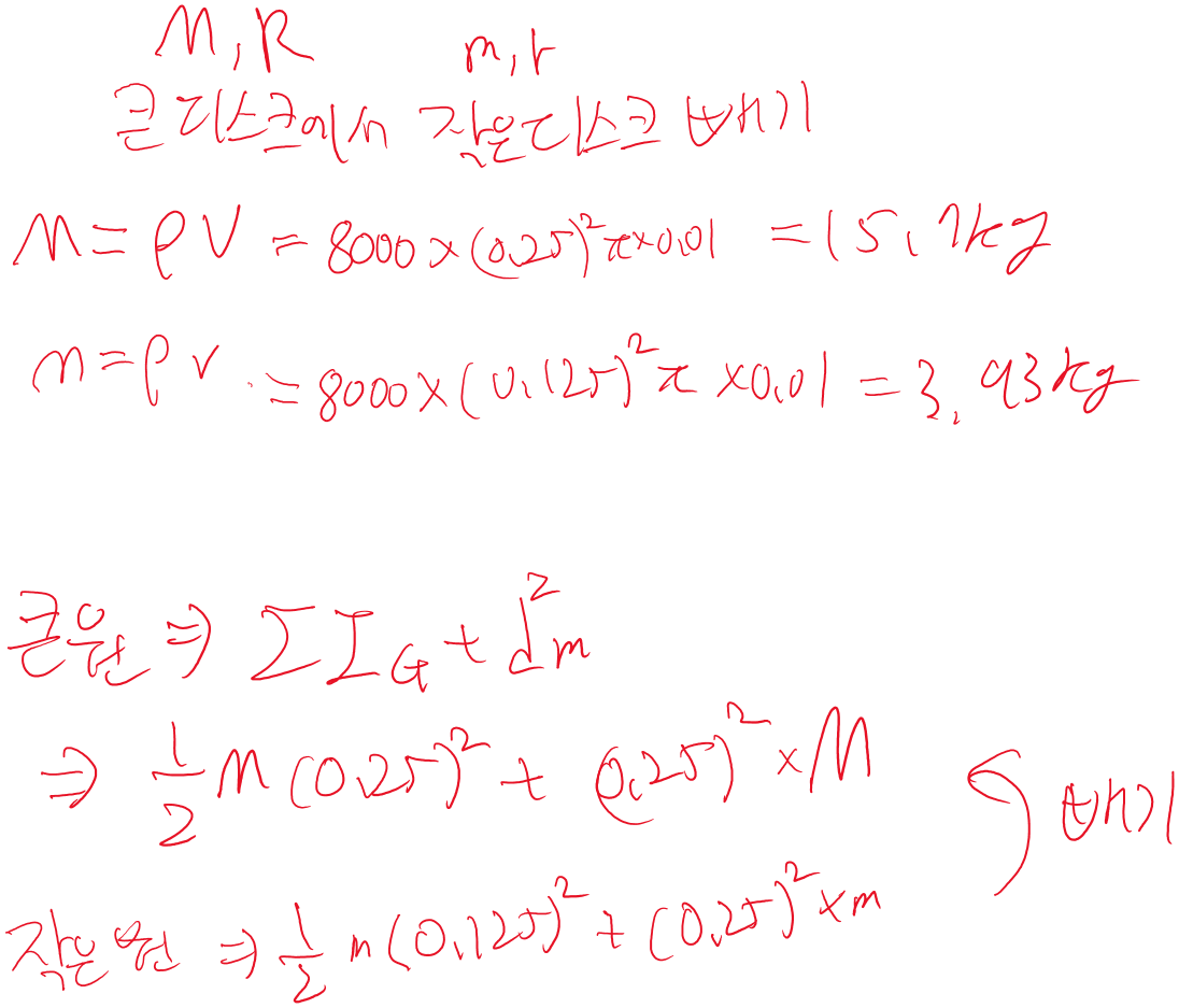 항상 회전이 없으면 M=0이므로 이 것을 통해서 잘 구하면 된다.