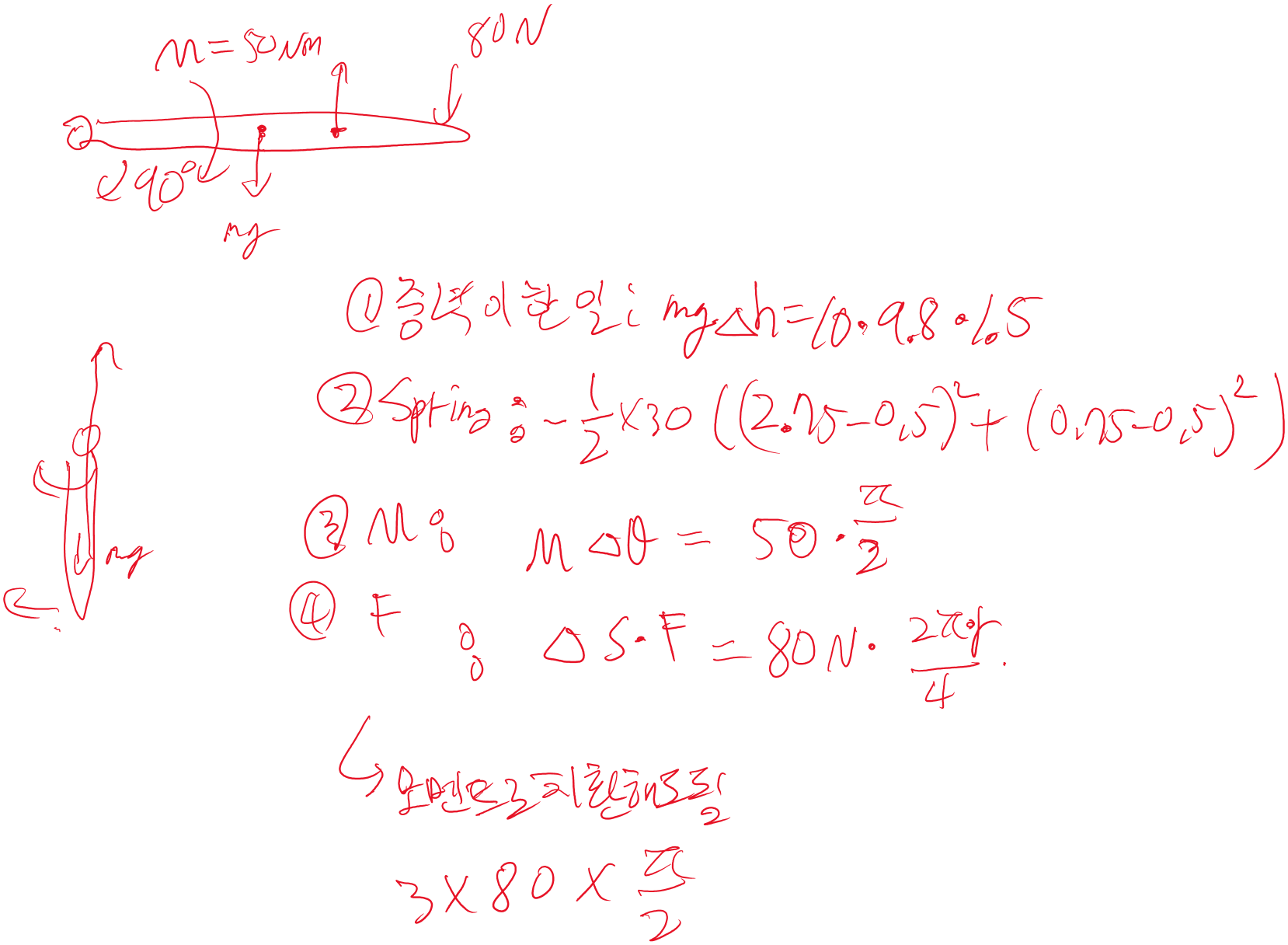 여기선 각각 무슨 힘이 들어가는지 다 확인 후에 이동거리를 곱하면 일이 뚝딱 나옵니다.