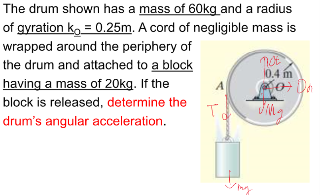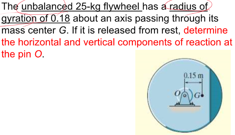 - 원판이 회전 가속도를 가지려면 G점이 적절한 방향으로 가속해야 하고, 이를 위해 O점은 적절한 접선방향 힘을 원판에 가해줘야 합니다.