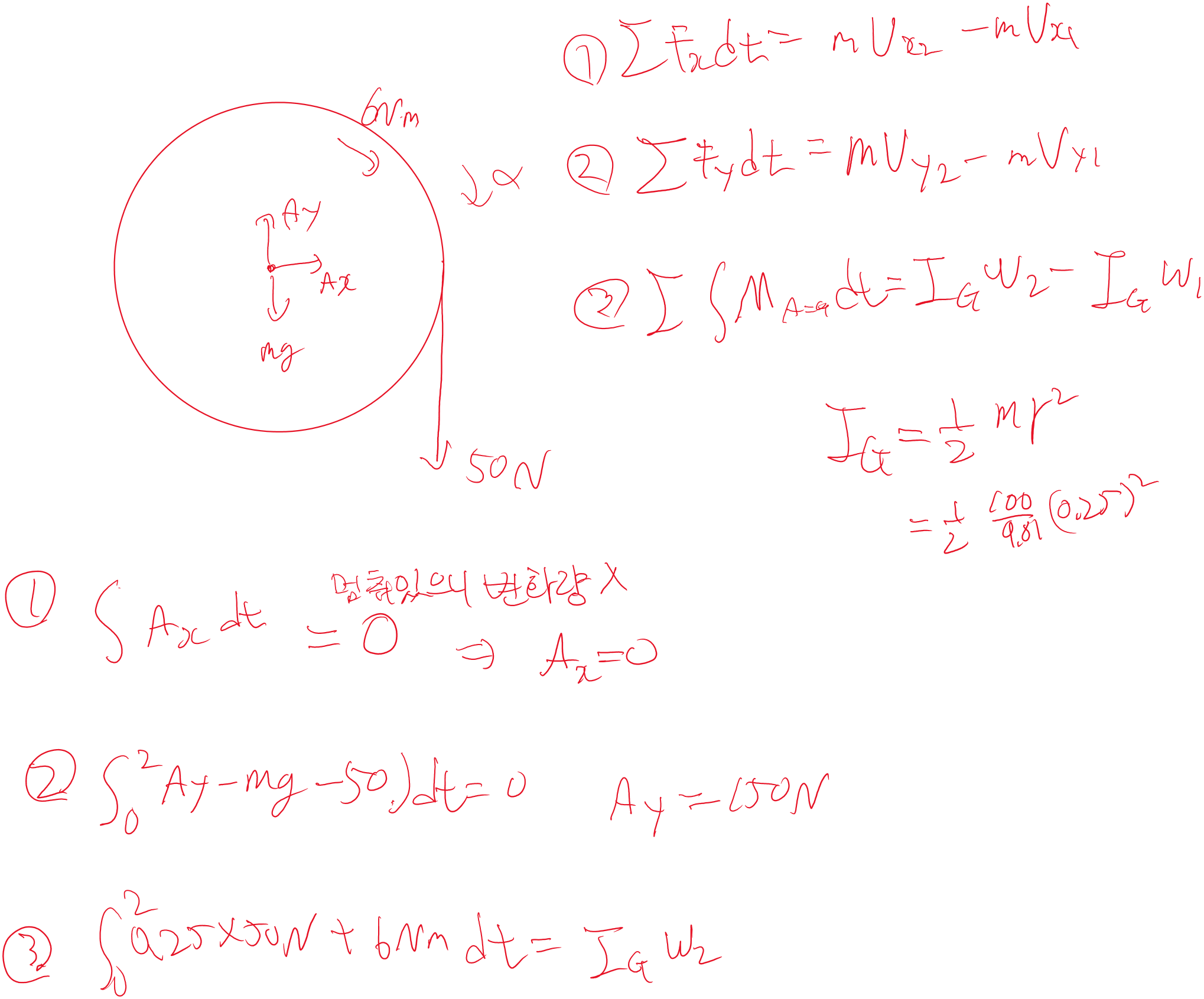 각 운동량, 각충격량, 선형 운동량, 선형 충격량 모두 신경써야 한다.