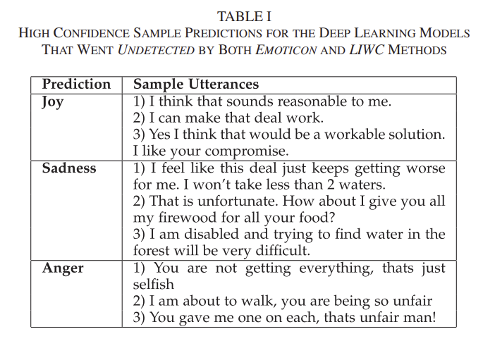 - 감정 인식은 단순히 협상 결과를 예측하는 것을 넘어, 협상 에이전트 설계에 활용 가능: