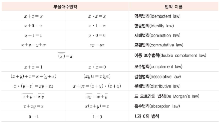 부울 대수 : 0, 1을 이용해 논리 동작을 표현하는 대수