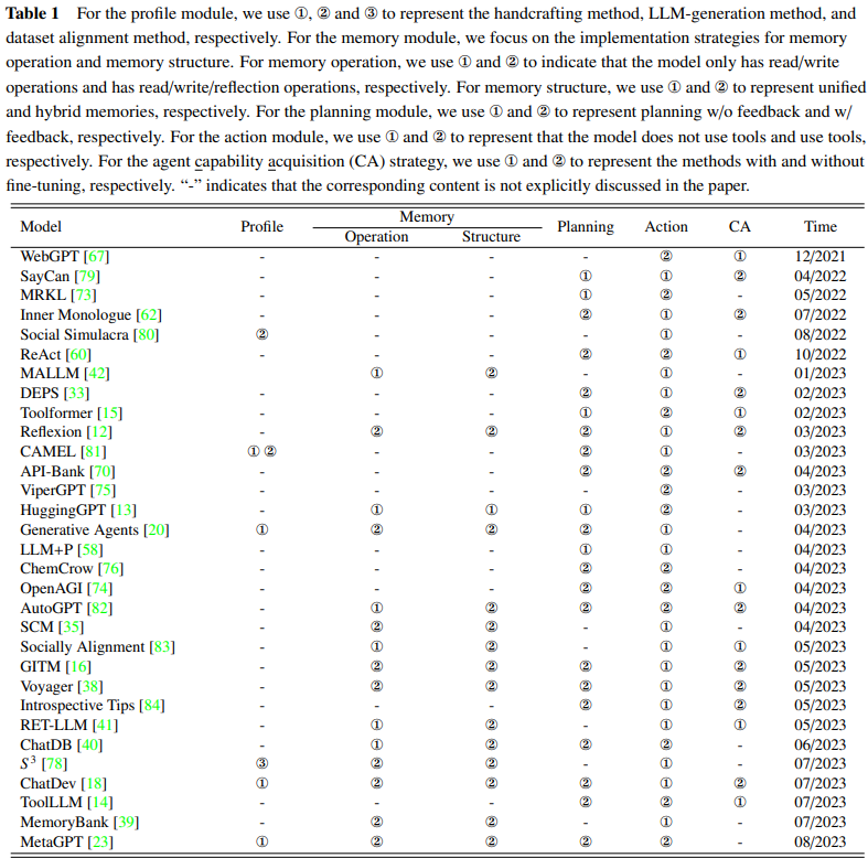 - 자율 에이전트는 크게 프로파일링, 메모리, 계획, 행동이라는 4가지 주요 모듈로 구성됨.