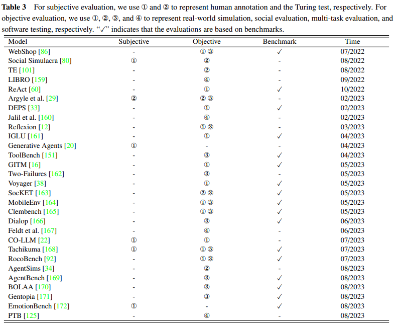 LLM 기반 에이전트의 성능을 평가하기 위한 다양한 방법론이 제안되었습니다:
