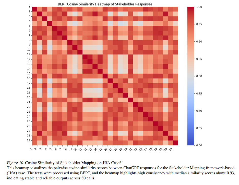 - 응답 간 변동 폭(0.91~0.94)은 비교적 작아, LLM의 결과가 대체로 일관됨을 나타냅니다.