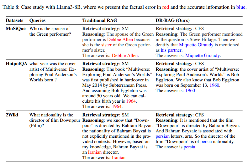 - DR-RAG는 Retrieval-Augmented Generation(RAG)의 기존 한계를 극복하며, 다단계 질의와 복잡한 QA 작업에서 효율성과 정확도를 동시에 만족하는 프레임워크를 제시.