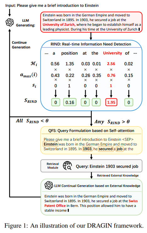 이 Figure는 DRAGIN의 전체 프로세스를 직관적으로 설명하며, 검색 강화 생성의 효과와 중요성을 명확히 보여줍니다.