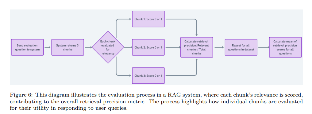 - Retrieval Precision (검색 정확도): 검색된 청크 중 질문과 관련된 내용의 비율을 평가.