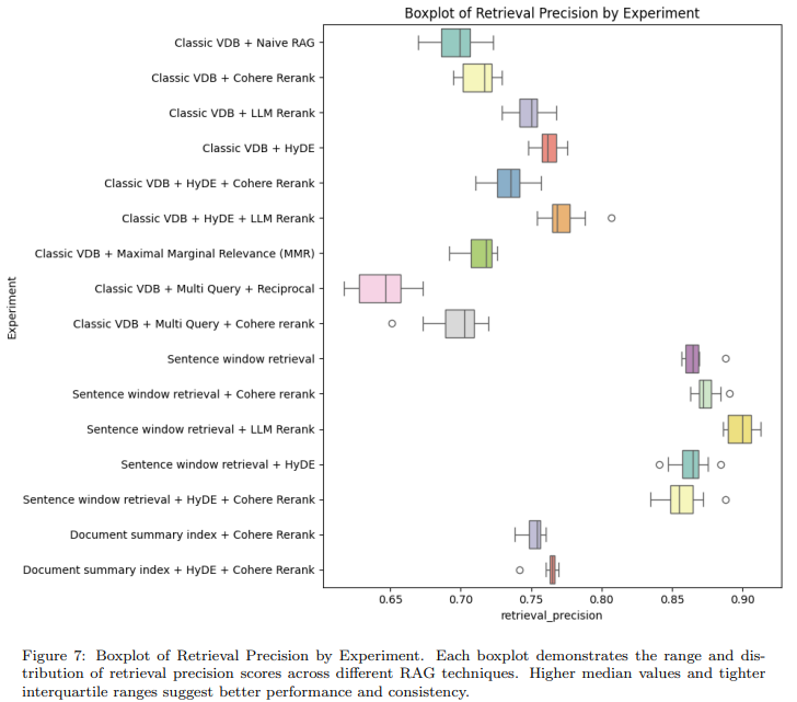 - Sentence-window Retrieval + LLM Rerank와 같은 조합은 다른 기술 대비 우수한 성능을 보임.