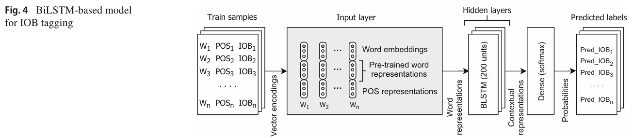 - BiLSTM 모델과 결합하여 문장 내 단어의 IOB 태그를 더 정확히 예측할 수 있었습니다.