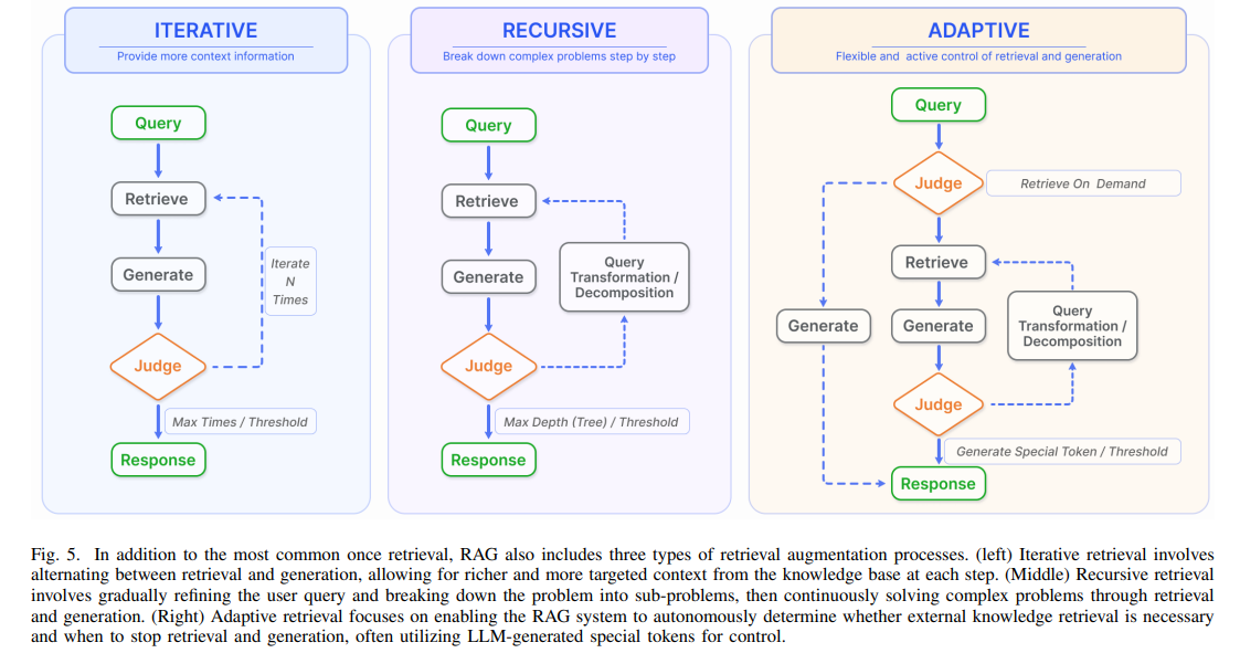 - Iterative 또는 Adaptive Retrieval을 도입해 검색과 생성을 반복적으로 최적화.