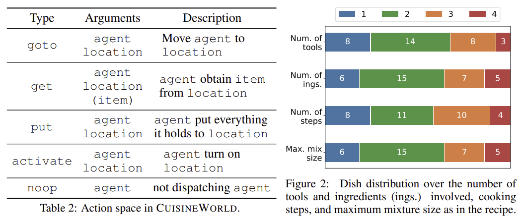 Table 2: CUISINEWORLD에서의 행동 공간