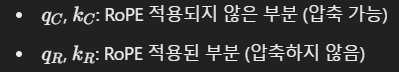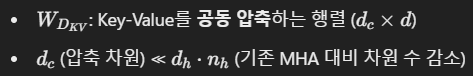- KV 캐시를 Latent Space로 압축: