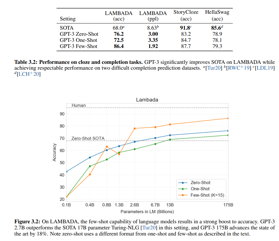 3. Table 3.2: LAMBADA, StoryCloze, HellaSwag 성능