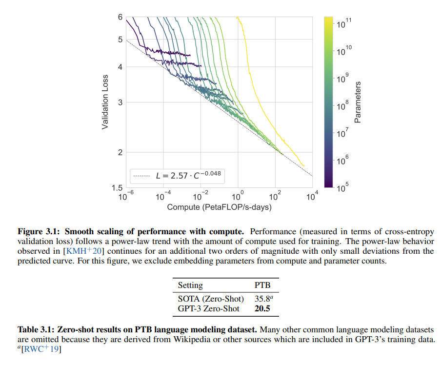 - GPT-3는 PTB 같은 언어 모델링 태스크에서도 Zero-Shot으로 강력한 성능을 발휘.
