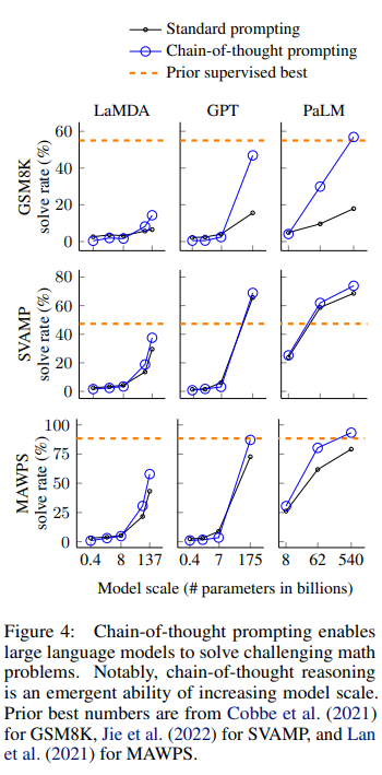 - 100B 이상 크기의 모델에서 CoT Prompting이 강한 성능 향상을 보임.