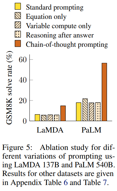 - 특히, PaLM과 같은 초대형 모델에서 CoT 프롬프팅은 다른 모든 변형 방식을 능가한다.