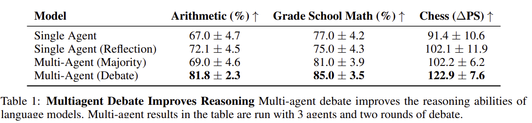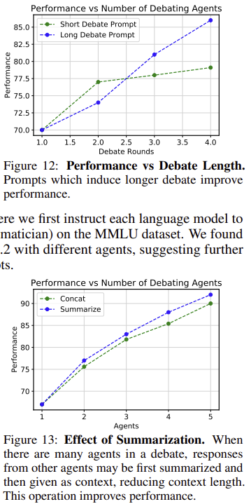 - 수학적 추론, 전략적 문제 해결, 사실적 질문 응답 등 다양한 태스크에서 다중 에이전트 토론이 성능을 향상함.