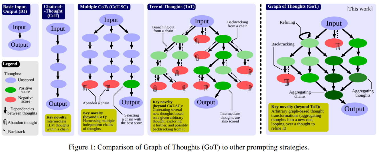 GoT는 기존의 CoT 및 ToT 방법론을 확장하여, LLM의 사고 과정을 그래프(DAG) 기반으로 모델링하는 방식이다.