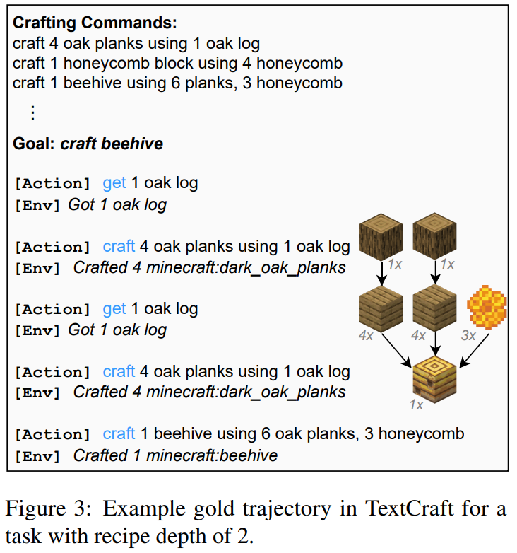 | TextCraft | Minecraft 유사 환경에서 아이템 제작 작업 | 예: "벌집 제작을 위해 재료 수집 및 조합" |