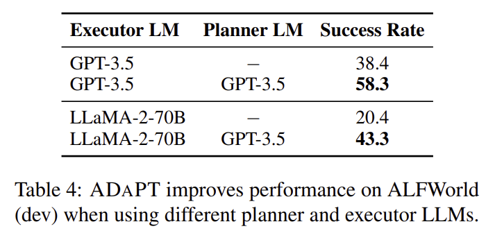 - 모든 모델에서 ADaPT 사용 시 성능 개선 확인.