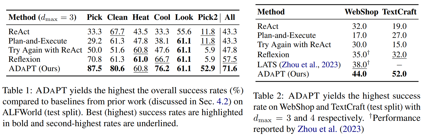 - ADaPT는 실패 시 동적 분해를 통해 복잡한 작업도 안정적 처리.